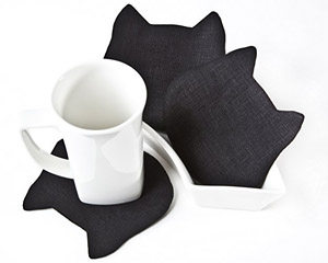 This set of four handmade coasters features a fun black cat design, making it a fun and practical gift.