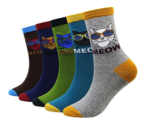 This set comes with five pairs of cat socks, each with a different image of a kitty wearing sunglasses.