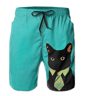These board shorts feature a handsome black cat wearing a tie, they’re made from quick-drying fabric, and they come in a range of sizes.