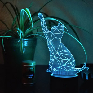 This unique LED table lamp looks like a 3D cat, and it cycles through seven different colors or you can set it to display a single hue.