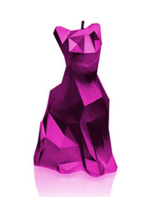This candle looks like a cat, it’s available in a range of colors, it comes in a gift box, and it has a unique geometric design.