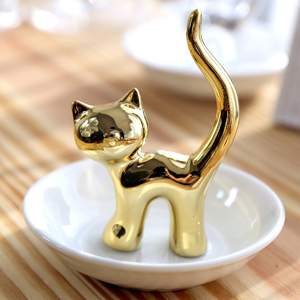 This jewelry holder features a cute cat, it’s made from ceramic, and it’s available in silver and gold styles.