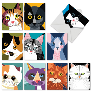 Cubic Cats: 10 Assorted Blank All-Occasion Note Cards Featuring Funky Artistic Cat Close Up Portraits