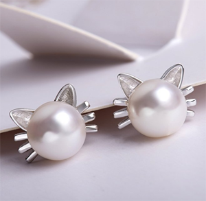 These earrings are made from freshwater peals and solid 925 sterling silver, and they feature cute cat ears and whiskers.