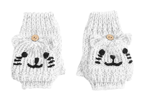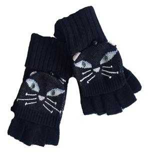 These black gloves feature cute cat faces, and you can wear them as fingerless gloves or transform them into mittens.