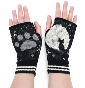 These black and white gloves feature fierce cats, and they’re made from a blend of acrylic and spandex.