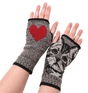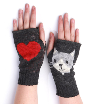 Double-Sided Knitted Cat & Heart Fingerless Handwarmer Gloves – Made In USA