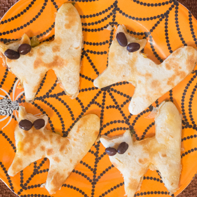 These quesadillas look like spooky cats, making them the perfect Halloween snack, and to make them you’ll need wraps or tortillas, cheese, black beans, and more.