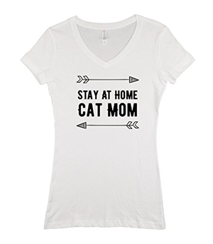 Trendy Apparel Shop Stay At Home Cat Mom Printed Women’s V-Neck 100% Cotton T-Shirt