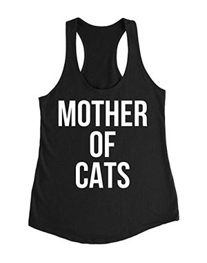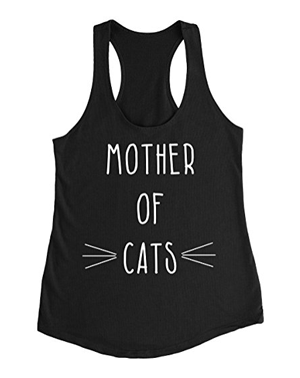This cat mom tank top is perfect for Mother’s Day, it comes in black and gray styles, it’s made in the USA, and it’s available in sizes from Small to XX-Large.