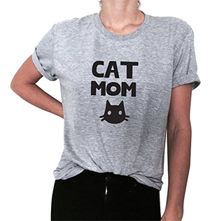 This charcoal grey cat mom t-shirt is perfect for Mother’s Day, it’s made in the USA, and it comes in sizes from Small to XX-Large.