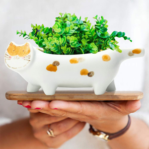 This planter is ideal for succulents, it looks like an orange and white cat, and it’s made from durable ceramic.