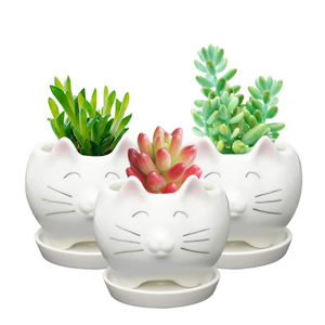 This set comes with three planters that look like white cats, and it includes coordinating saucers and drainage holes.
