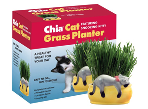This planter features a sleeping cat, and it includes seeds you can use to grow grass your kitty will love.