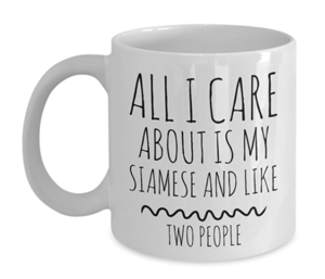 Siamese Cat Mug – All I Care About Is My Siamese And Like Two People – Siamese Gifts – Unique 11 oz Ceramic Coffee or Tea Cup for Cat Lovers